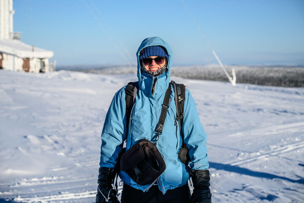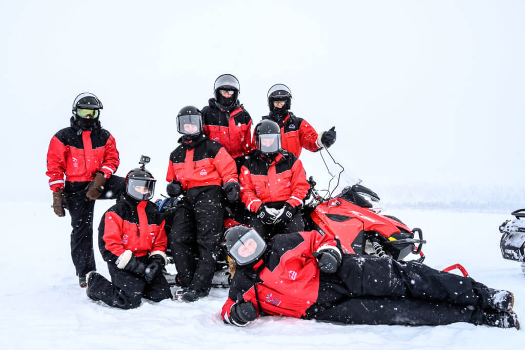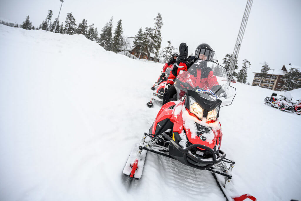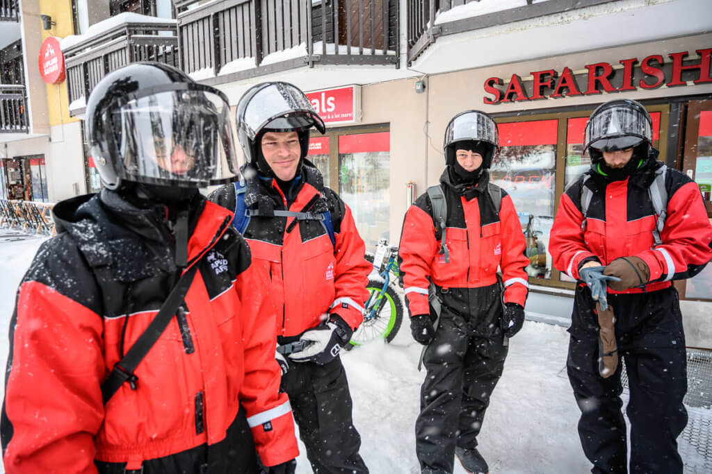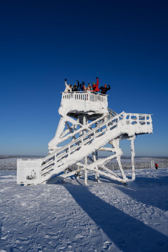 Der dritte Tag startete mit einer Motorschlittentour – wir wählten bewusst die Einsteigervariante, da einige von uns noch nie zuvor auf einem Motorschlitten gesessen hatten. Ausgestattet mit dicken Overalls vom Veranstalter und nach einer kurzen Einführung, fuhren wir auf den Berg Kaunispää.