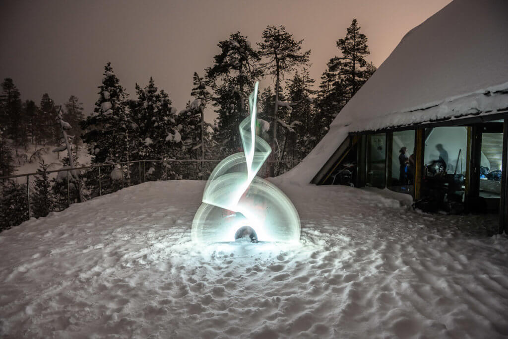 Am Abend wagten wir uns trotz durchzogener Prognose zur Aurora-Hütte. Die Nordlichter blieben aus, aber wir nutzten die Gelegenheit, um mit Langzeitbelichtung und Lightpainting zu experimentieren – und uns zwischendurch immer wieder bei Snacks und Tee aufzuwärmen.